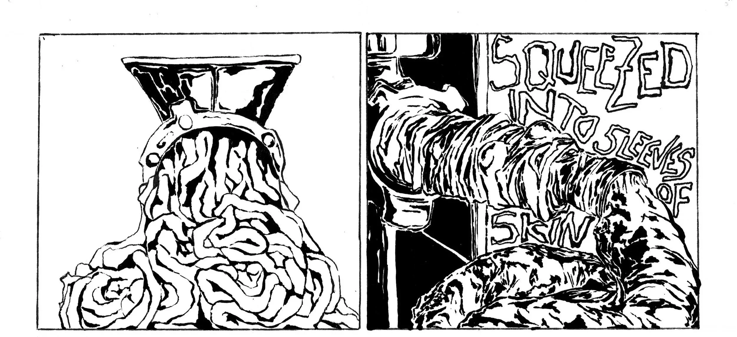Nothing is neutral and unpolitical; one must investigate the sociopolitical and historical context, seek critical interpretations, and evaluate what is and isn’t included. Growing up as a biracial child of immigrants defined the way I view and interact with the world and has molded me into the person I am today, with how it interacts with me. My artistic practice is heavily influenced by my experience attending a German school in Japan, where I was ostensibly surrounded by my community and peers, yet still deemed inadequate and excluded. Literary and historical analysis has especially defined how I consume media, and much of the German and Japanese stories I grew up around have underlying themes of political unrest, war, and natural catastrophes and their consequences. With a grotesque, abstracted depiction of the world, my high-contrast illustrations and comics primarily explore otherization and grief. I examine perception and identity through a multicultural lens, blending abstract narratives with visual metaphors and seemingly disconnected representational images. My intuitive practice draws on the subconscious and seeks unknown influences, allowing me to focus on conveying tone and atmosphere. With the underlying themes of otherization in my art, it is of utmost importance to investigate biases and ideological challenges and push back on the validity and solidity of beliefs.